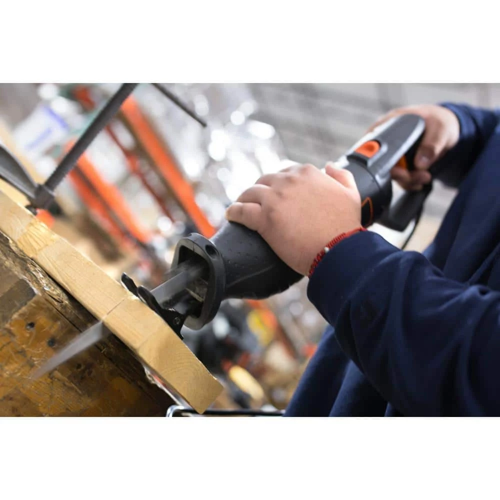 Remember when you could saw through wood, metal, drywall, rubber, plastics, plaster and more. The WEN 10 Amp Corded 8-Position Variable Speed Reciprocating Saw makes easy work out of a variety of materials. The 10 Amp motor combined with the pressure sensitive trigger provide anywhere from 0 to 2800 strokes per minute. Featuring a 1-1/10 in. stroke, take on wood up to 4-1/2 in. thick and metal up to 3/5 in. thick. With stops every 45 °s, pivot the rotating head in up to eight different positions depending on the needs of the project at hand. The adjustable shoe helps provide additional support when sawing while the trigger lock keeps the saw running even after you let go of the trigger. The lightweight ergonomic design features a soft rubber-grip front handle, contoured to fit the grooves of your hand for maximum comfort during operation. The twist-lock quick-release blade holder allows for easy blade changes without the need of outside tools. And because its a WEN product, your reciprocating saw comes backed by a two-year warranty and a friendly customer help line all to make sure you remember WEN.
