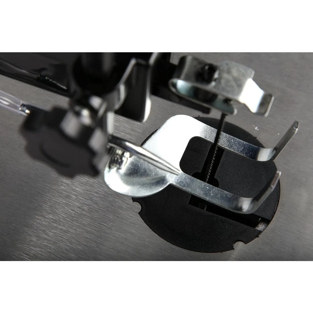 - Features a thumb screw blade adapter for tool-free blade changes, a cast iron base, an air pump, a dust port, a foot lock clamp, and three 5 in. blades