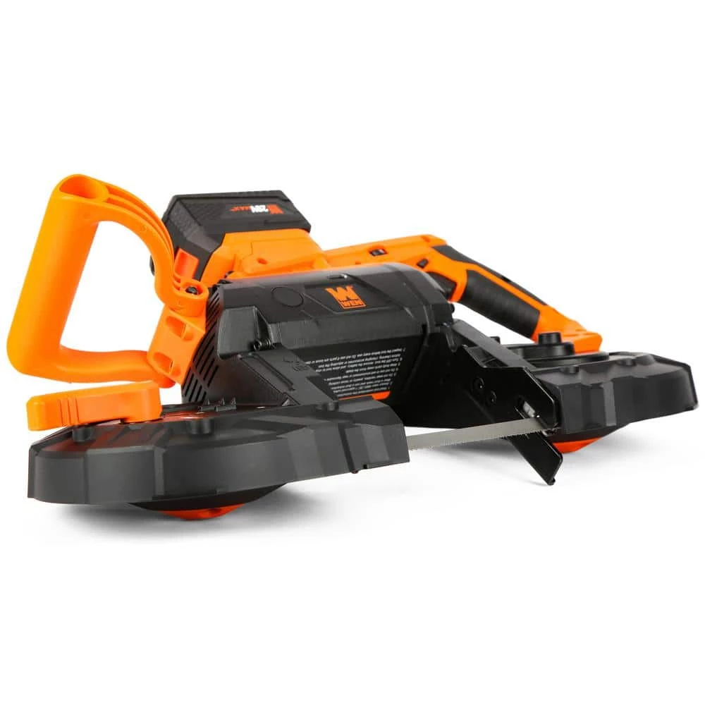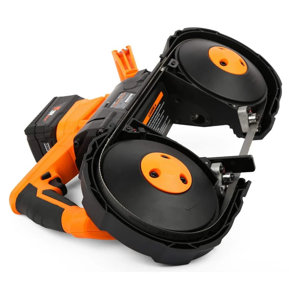 Remember when you could saw through metal, plastic, rebar, pipes and more. The WEN 20V Max Cordless Portable Band Saw maximizes portability without sacrificing power. our deep-cut design features a cutting capacity 5 in. wide and 5 in. deep, allowing you to take on workpieces with a variety of shapes and sizes, the onboard variable speed dial runs the blade anywhere from 60 to 420 feet per minute depending on the needs of the material at hand, the lightweight and compact design weighs in at a mere 12.6 pounds, combining with the adjustable front handle to limit fatigue during long days on the job, the included metal-cutting blade measures in at 44-7/8 in. x 1/2 in. in size (1140 by 12.5 mm), with 10/14 teeth per inch, the included 5.0 Amp hour lithium-ion battery delivers consistently powerful performance at any level of charge, features an onboard LED charge gauge and is cross-compatible with the entire WEN 20V Max Cordless Lithium-Ion Power Tool line. And, because it’s a WEN product, your portable band saw comes backed by a two-year warranty, a stocked inventory of replacement parts and a friendly customer phone line, all to make sure you remember WEN.