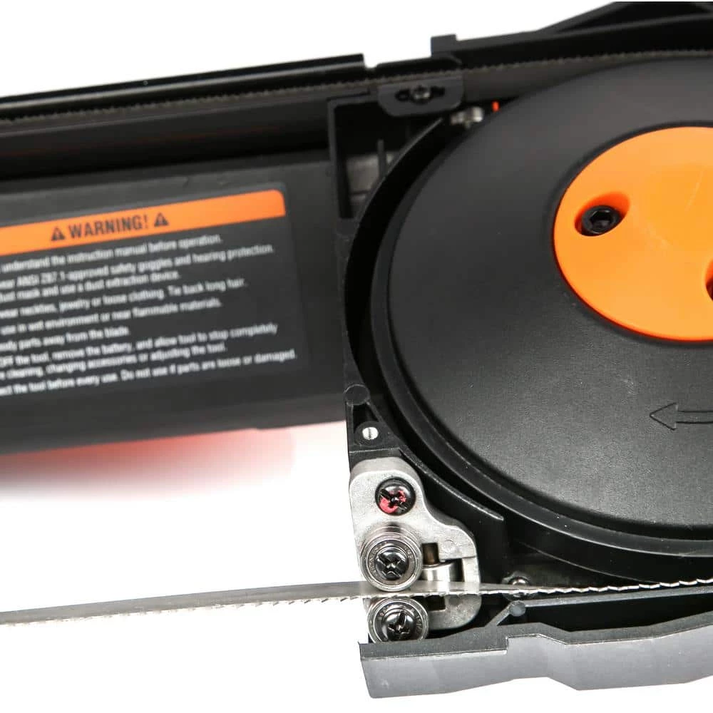 - Includes a 10/14 TPI metal-cutting blade, an adjustable front handle, ball-bearing blade guides, an external blade tensioning lever, a 5.0Ah battery, a charger and a two-year warranty