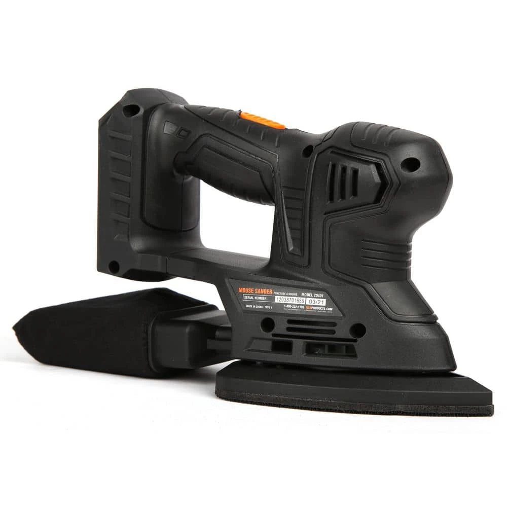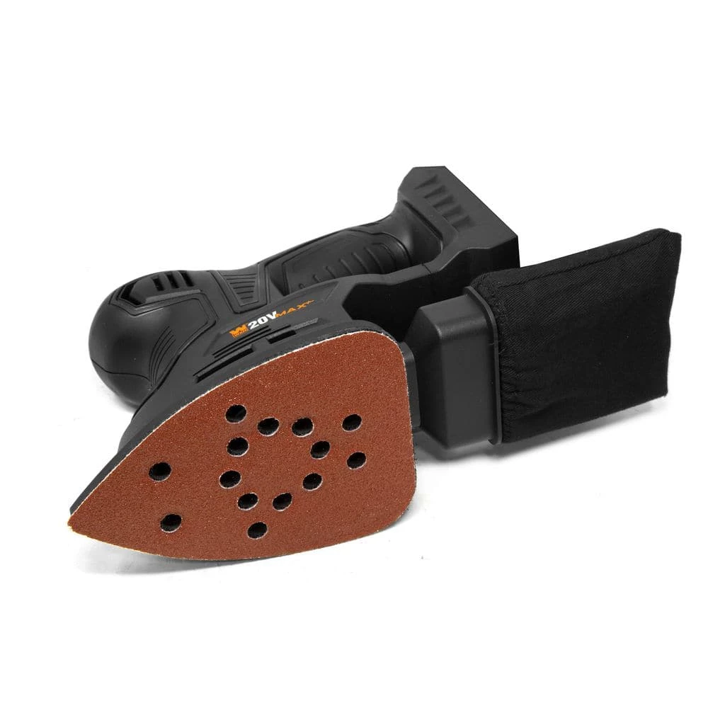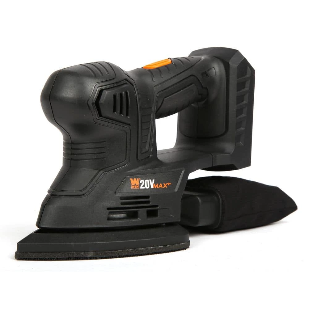 Remember when you weren’t bound by cords. Get the finish you deserve with the WEN Cordless Palm Sander. The 5-x-3.75 in. sanding pad features an angled nose for navigating tight corners, while the fan-assisted dust holes collect sawdust into the included dust bag. The hook-and-loop base makes for easy sandpaper removal and installation, allowing for quick changes between grits during operation. Our unique design features an ergonomic handle and a contoured palm grip for maximum control. Compatible with the entire line of WEN 20-Volt Maximum Lithium-Ion batteries (models 20202, 20204, 20205) and chargers (models 20200C, 20201Q). This sander also includes two 80-grit pieces of sandpaper and a removable dust bag. And because it’s a WEN product, your cordless palm sander comes backed by a two-year warranty, a stocked inventory of replacement parts and a friendly customer help line, all to make sure you remember WEN.
