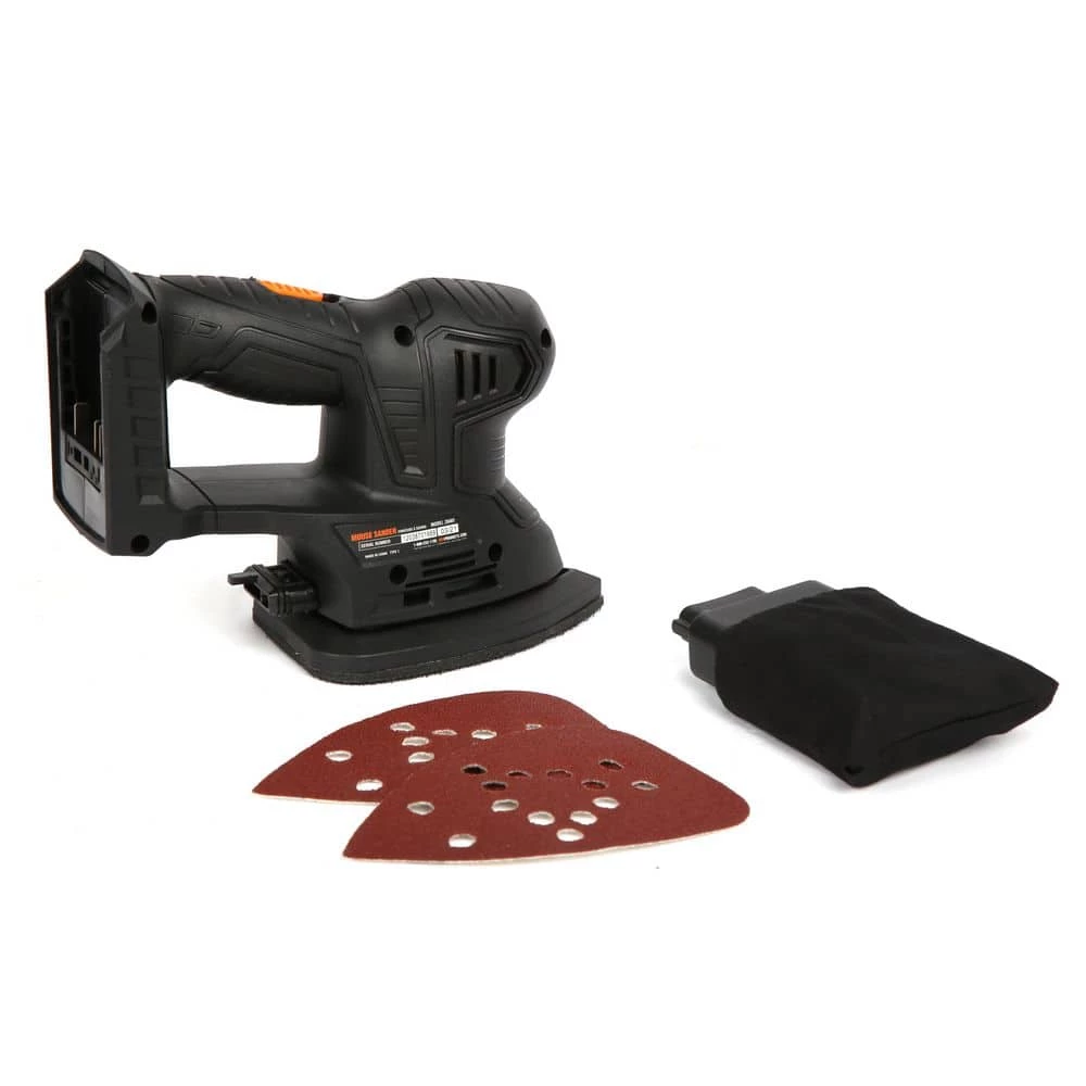 - Includes two 80-grit pieces of sandpaper, a removable dust bag and a 2-year warranty