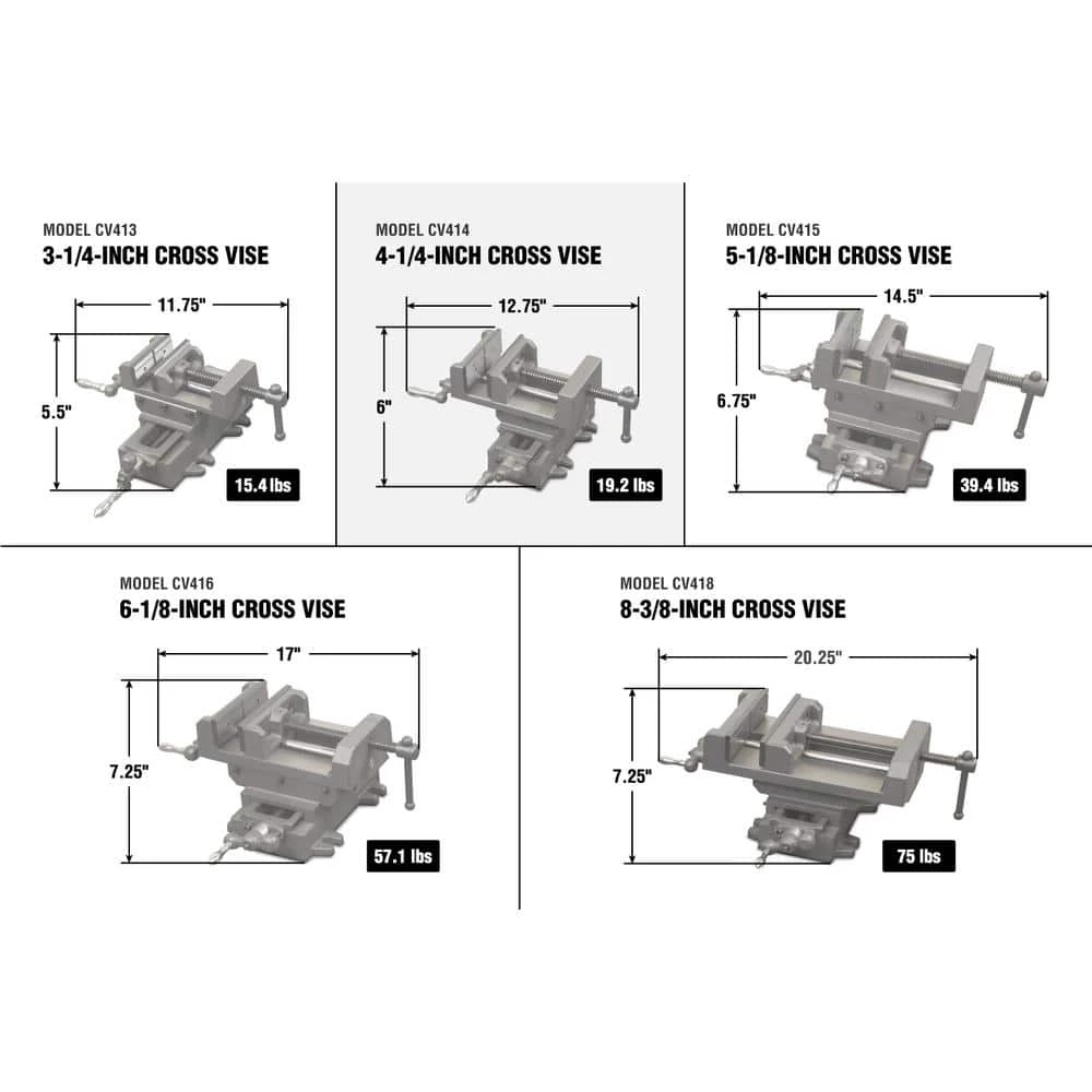 Remember when you could make fine-tune adjustments with the simple turn of a wheel. The WEN 4.25 in. Cross Vise provides stable support for your workpieces. Perfect for incremental drilling and other precision work. Attach it to your bench top, your drill press, your work table and more. Made from heavy-duty powder-coated cast iron, the WEN Cross Vise grips tightly onto your workpieces, providing over 1900 lbs. of clamping force. The 4.25 in. x 1.25 in. jaws open up to 4.125 in. W. Make minor adjustments along either axis with the onboard hand wheels. Each hand wheel features machined 0.1 mm increments, each full turn representing 3 mm of travel. The vise moves a full 5.8 in. (148 mm) along the x-axis and 6 in. along the y-axis (150 mm), making it the perfect companion for woodworkers and metalworkers alike. The fixed jaw features a V-shaped groove to hold round objects either vertically or horizontally while the removable handles help users easily install the vise into tight spaces. with five 1/2 in. mounting brackets positioned around the outside edge of the vise’s base, the WEN Cross Vise is compatible with the majority of drill press tables on the market. and because it’s a WEN product, your cross vise comes backed by a 2-year warranty, a nationwide network of skilled service technicians and a friendly customer help line all to make sure you remember WEN.