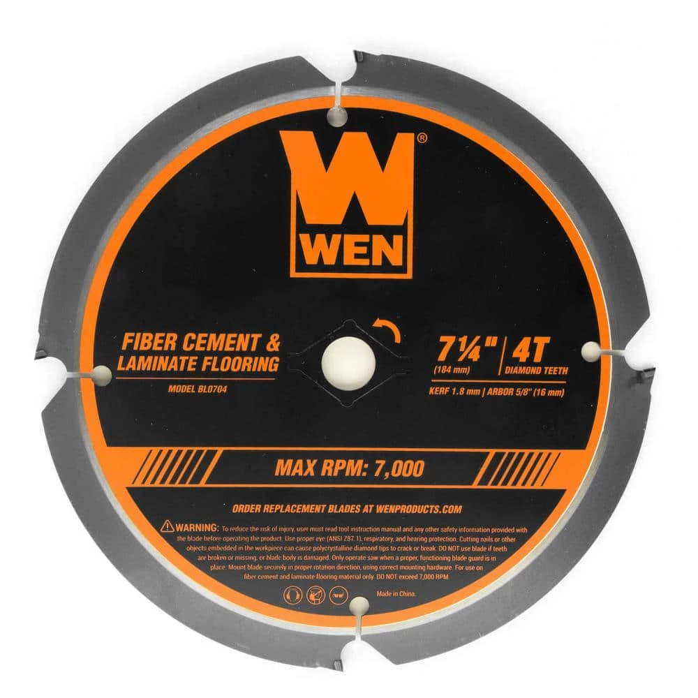 Remember when you could slice through cement? The WEN 7-1/4-Inch Professional Fiber Cement Saw Blade provides reliable and accurate performance, maintaining its straight shape and sharp edges for longer than the competition. The polycrystalline diamond-tipped circular saw blade slices through fiber cement and laminate flooring with ease. The 5/8-inch arbor (15.88 mm) allows for compatibility with the majority of 7-1/4-inch circular saws, jobsite saws, and track saws on the market. Heat expansion slots help the blade expand and contract as needed to provide maximum accuracy across a wide range of cutting conditions. Our unique PCD formula fights off potential wear and tear caused by highly abrasive fiber cement board, making your blade last. This lightweight, ultra-thin blade provides maximum efficiency during operation, leaving behind a kerf a mere 1/15 of an inch wide (1.8 mm). It’s time to get reliable and powerful performance with a WEN Saw Blade. Remember when you had a blade that lasted? Remember WEN.