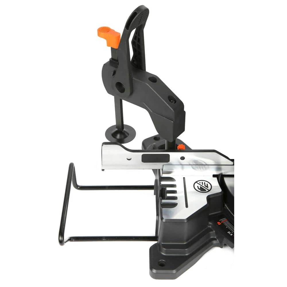 - Includes 7.25 in. 40-tooth carbide-tipped blade (w/5/8 in. arbor), 2 table extensions, 1 clamp assembly, a dust port, an onboard carrying handle, a dust bag and a 2-year warranty