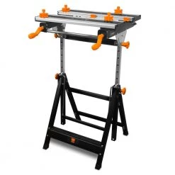 24 in. H Tilting Steel Adjustable Portable Work Bench Sawhorse and Vise with 8 Sliding Clamps by WEN